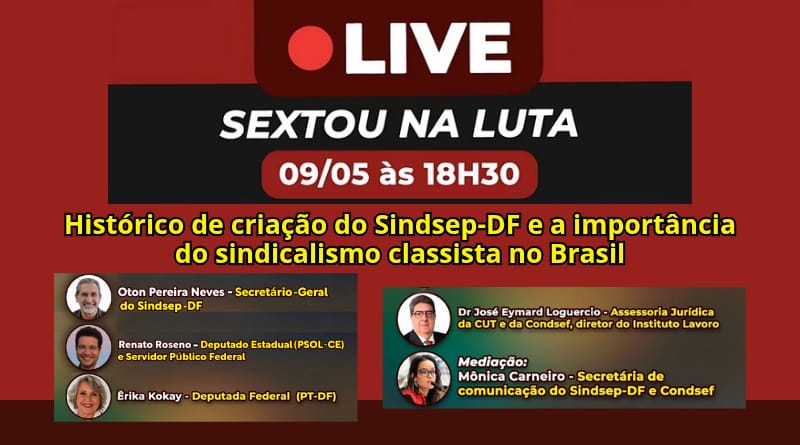 O histórico de criação do Sindsep-DF e a importância do sindicalismo classista no Brasil são os temas da live “Sextou na Luta”, na próxima sexta-feira, dia 9 de maio, às 18h30, no canal do YouTube da Condsef: