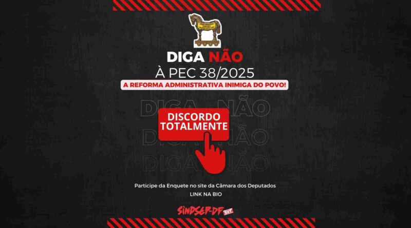 Para ajudar a barrar a tramitação da proposta, convocamos os servidores a participarem da enquete sobre a PEC 38, disponível no site da Câmara, votando: DISCORDO TOTALMENTE.