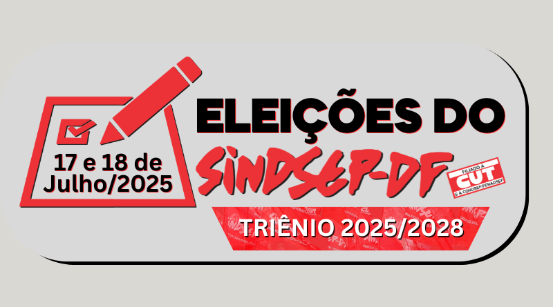 Nos dias 17 e 18 de julho, o Sindsep-DF realizará as eleições para a Diretoria Administrativa e o Conselho Fiscal – triênio 2025/2028, com votação presencial e online. Podem votar os servidores filiados ao sindicato até 19 de março deste ano.