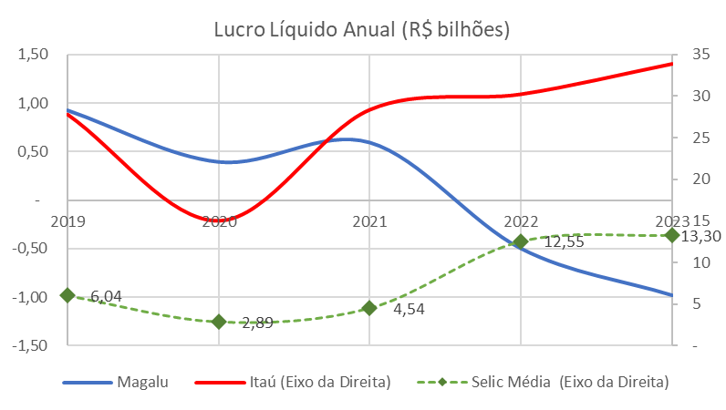 Subtraindo, da receita anual usada no exemplo hipotético, o total das despesas do BCB de R$ 3,99 bilhões (Banco Central do Brasil, 2023), o lucro seria de R$ 10,48 bilhões, o que corresponde a 31% do lucro líquido do Banco do Brasil em 2023!