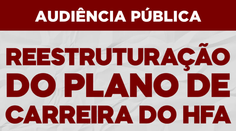 Na audiência pública, o grupo concentrará esforços na apresentação da proposta de reestruturação do órgão e na demonstração comparativa da situação remuneratória do HFA em relação a outras carreiras, ficando responsável também pela defesa da proposta, organização das intervenções e os principais argumentos a serem sustentados.
