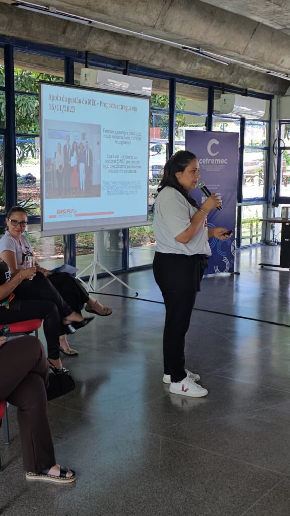 Na manhã desta terça-feira, 18, o Sindsep-DF e a Condsef participaram da cerimônia de posse dos novos servidores do Ministério da Educação (MEC), realizada no Centro de Formação e Desenvolvimento dos Trabalhadores em Educação (Cetremec). As entidades deram as boas-vindas aos recém-empossados e apresentaram sua atuação na defesa dos direitos do funcionalismo, com destaque para o enfrentamento à Reforma Administrativa (PEC 38/2025), além de esclarecer dúvidas sobre negociação salarial, carreira e organização sindical.