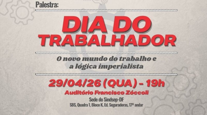 Para marcar as celebrações do Dia do Trabalhador, o Sindsep-DF promove, na próxima quarta-feira (29), às 19h, o debate “O novo mundo do trabalho e a lógica imperialista”, no auditório Francisco Zóccoli, na sede do sindicato (SBS, Quadra 1, Bloco K, Edifício Seguradoras, 17º andar).