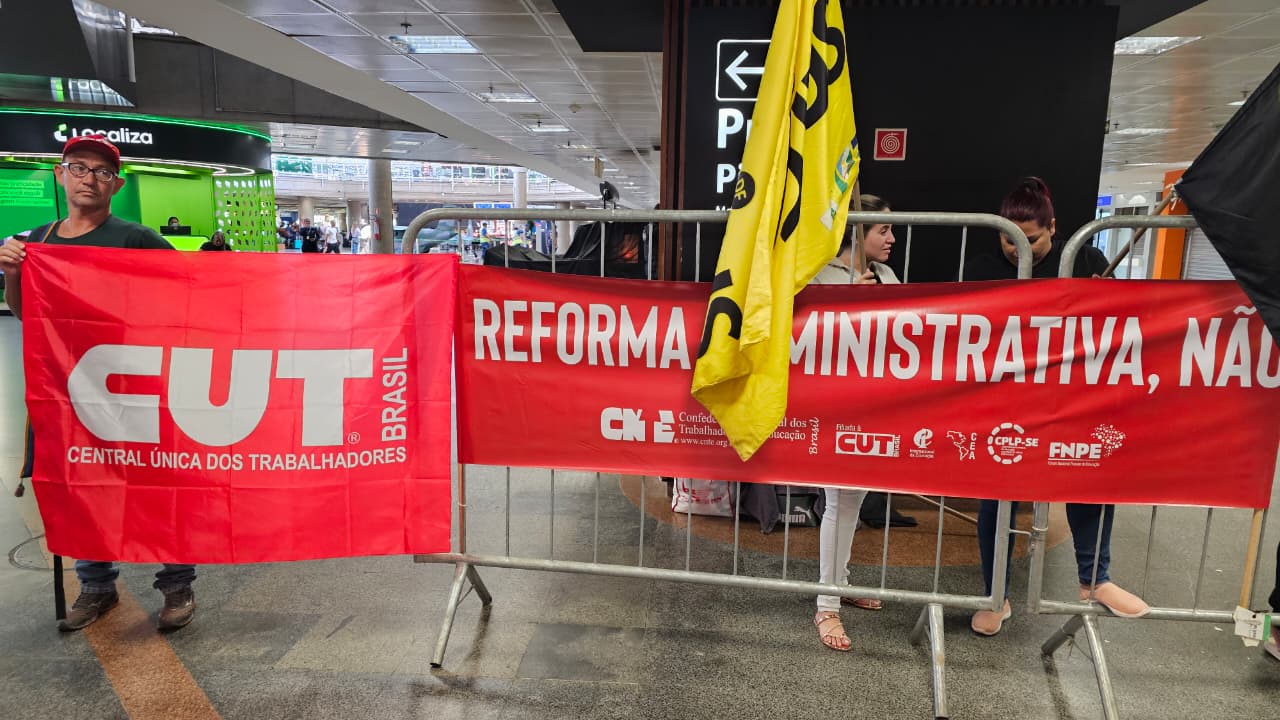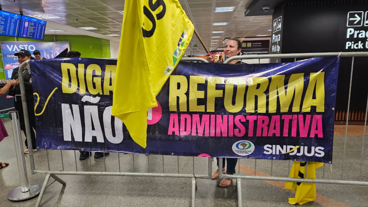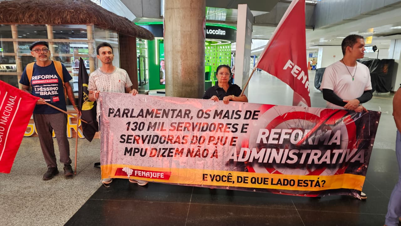 Sindsep-DF realiza ato no aeroporto contra a reforma administrativa