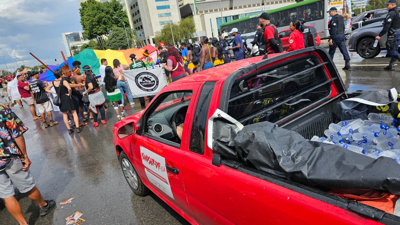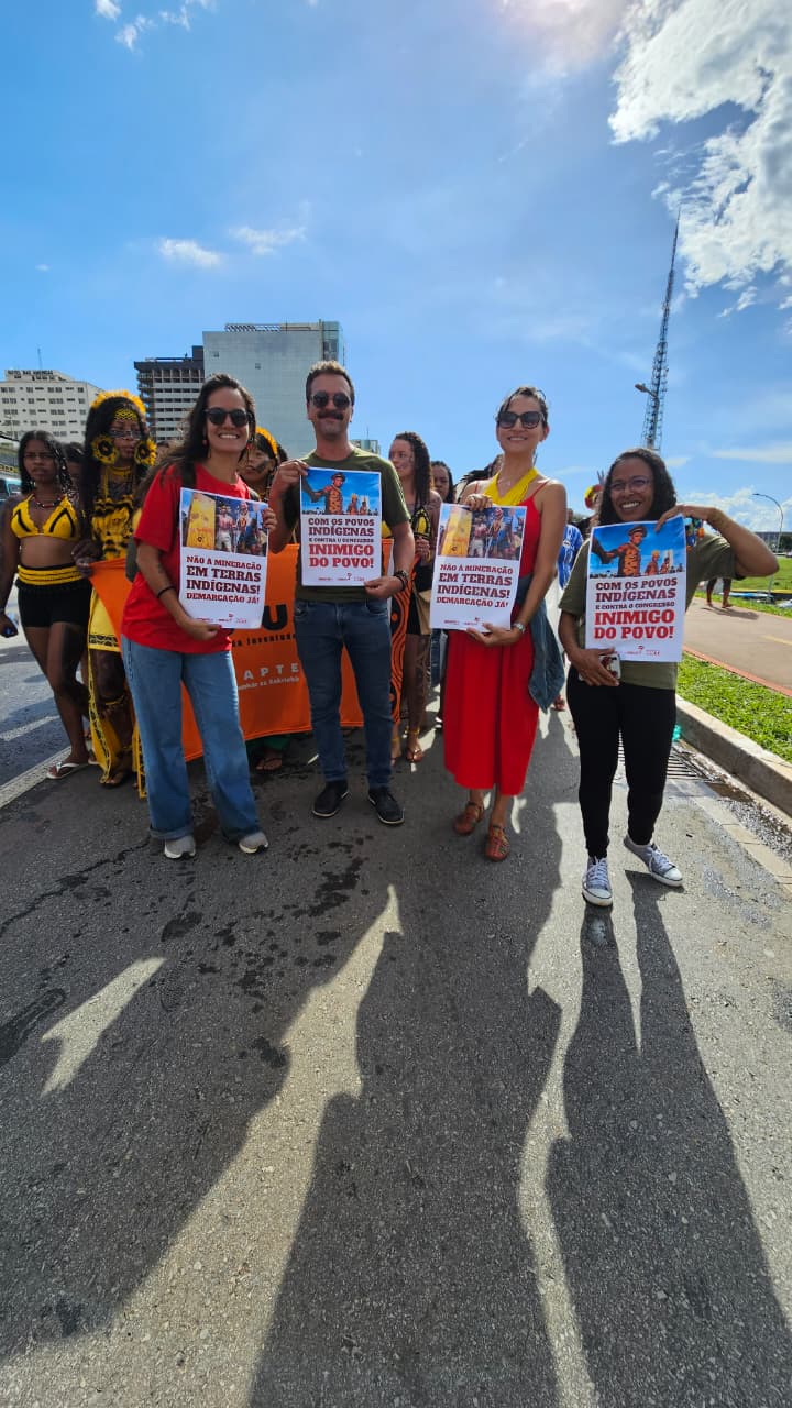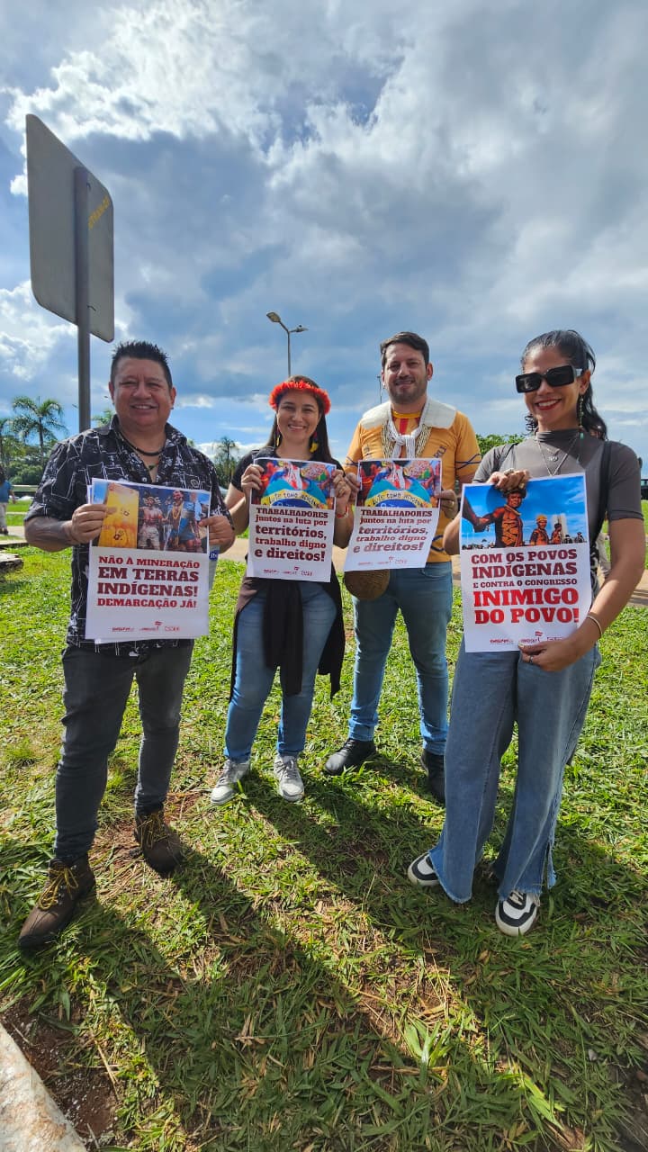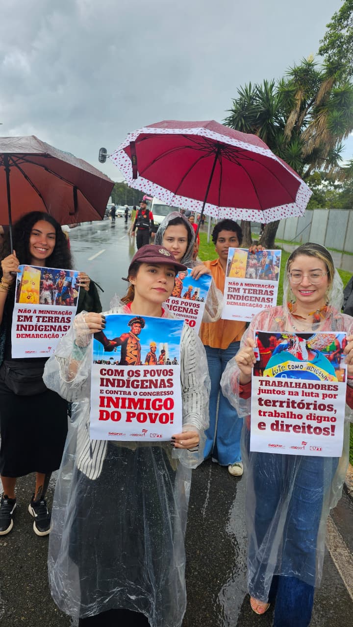 A direção do Sindsep-DF participou na tarde desta quinta-feira, 9 de abril, da marcha dos povos indígenas “Demarca, Lula: Brasil soberano é terra indígena demarcada e protegida”. Com faixas e cartazes, o sindicato reafirmou seu compromisso em defesa da demarcação e proteção dos territórios e dos direitos dos povos indígenas, fundamentais para garantir as condições de reprodução da vida de toda a sociedade e que, por isso, constituem uma luta de toda a classe trabalhadora.